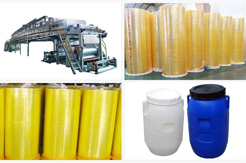 從原材料(BOPP薄膜,水性壓敏膠,紙芯)在同一臺機器上制作印刷,透明度和顏色不同尺寸的膠帶。